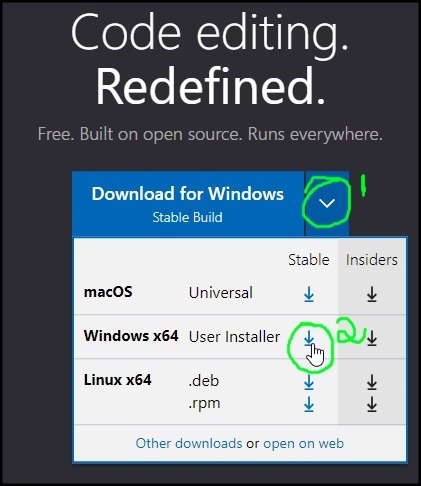 2 Select the Windows x64 User Installer Stable Version and Click to download.
